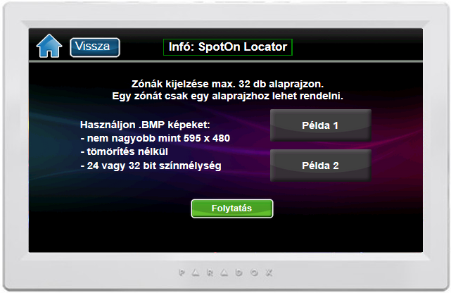 A készülékre felvihető alaprajzok azonnali információt adnak a riasztások helyéről és a zónák állapotáról, amit egyetlen „gombnyomással” elérhetünk.
