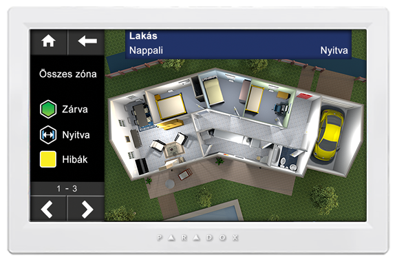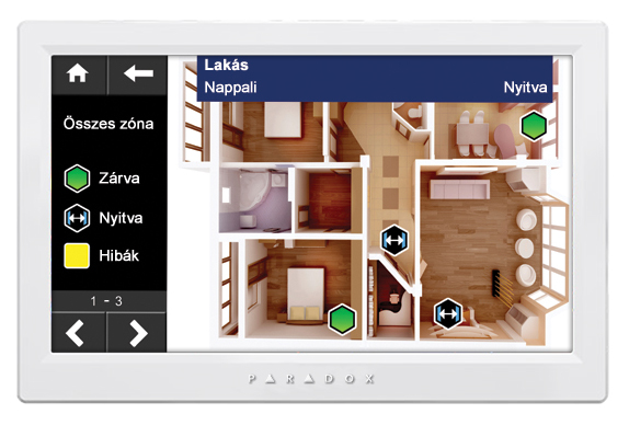 A készülékre felvihető alaprajzok azonnali információt adnak a riasztások helyéről és a zónák állapotáról, amit egyetlen „gombnyomással” elérhetünk.