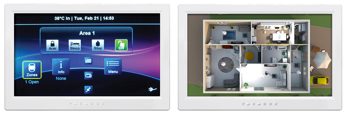 Az új, nagyméretű kezelőegység nagyfelbontású kijelzőjével, élénk színeivel nemcsak riasztónk kezelője, hanem a lakás ékköve lesz!